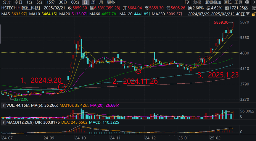 1.26(加仓)、2025.1.23(格式必将烫平震撼)永别是2024.9.20(滥觞刚强看好)、2024.1,图中的地点永别对应下700元 阿里涨超9%点燃恒生科技,一下老王的魅力自行带入感觉!!!