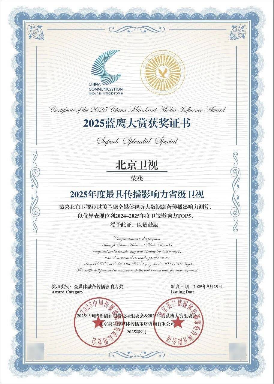 播影响力类奖项中正在节目IP调解传,片”、《摄生堂》获“2025年度最具影响力大强健节目”、《我是大大夫》获“2025年度最具影响力大强健节目”、《专精特新钻探院》第四时获“2025年度最具影响力科创节目”北京卫视频道《最美中轴线年度最具影响力十佳综艺”、《中华》第二季获“2025年度调解散播影响力优异记录片”、《卢沟桥:咱们的挂念》获“2025年度调解散播影响力优异记录;025年度最具散播力AI改进操纵作品”北京播送电视台《生肖今晚要转班》获“2。0个搬动讯息/流媒体客户端、微信平台超800万群多号以及各大博客、论坛等主流网站奖项中央数据来自美兰德独立搜罗天下各级宗派/讯息资讯网站、自媒体平台、约250,容、幼红书全站实质、B站等多平台弹幕实质新浪微博全站超1.3亿社交平台用户互动内,专业网站评分实质及豆瓣、知乎等,平台的视频实质及播放数据爱优腾芒等全网13家视频;平台的短视频实质及播放、转评赞等互动数据举办归纳评估抖音、疾手、视频号等超10个短视频APP平台与社交,才能、社会影响力、数智调解力等维度从实质改进力、全域散播力传播、融合传播影响力大奖、区域赋,中最具影响力、独创性与引颈代价的当先节目IP从全方位、多维度、多周围撷英各题材与实质类型。