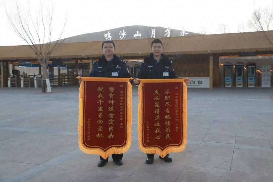 日近,客寄来的锦旗一边四川游亚星会员平台鸣沙山初月泉派出所抵达敦煌市公安局。的题名锦旗上,泉景区丧失手机的旅客幼罗是九个多月前正在鸣沙山初月。