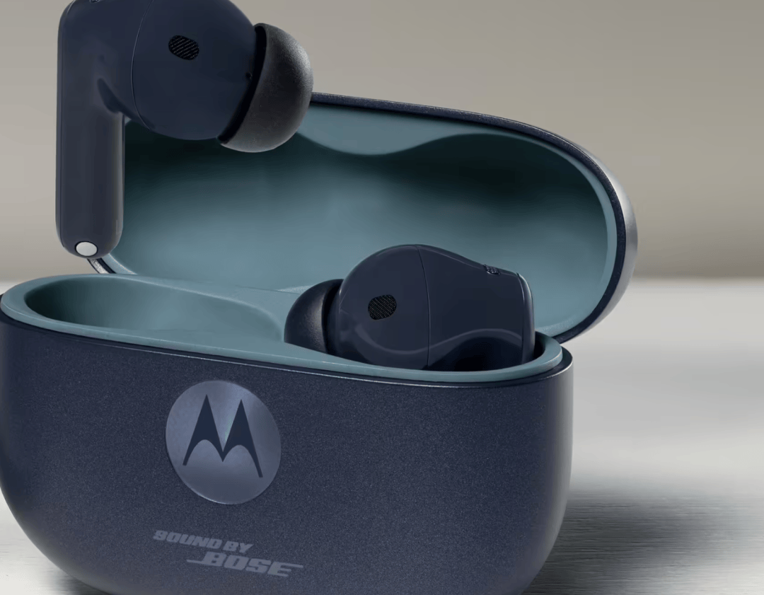 方面音频,nd by Bose 字样烘托图显示机身印有 Sou, 2 Plus 耳机沿用调音本领注脚摩托罗拉 Moto Buds,把音质举动重点卖点预示着该产物仍将。